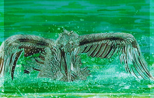 splashing pelican